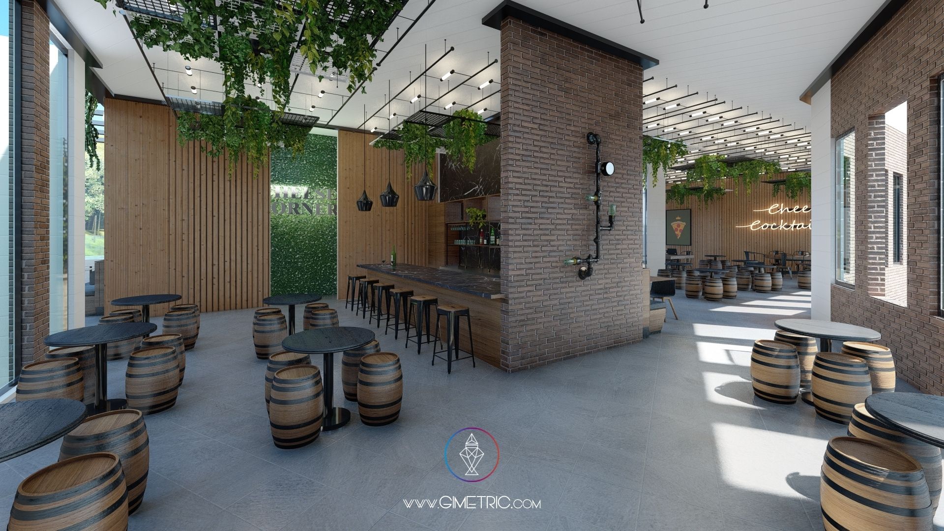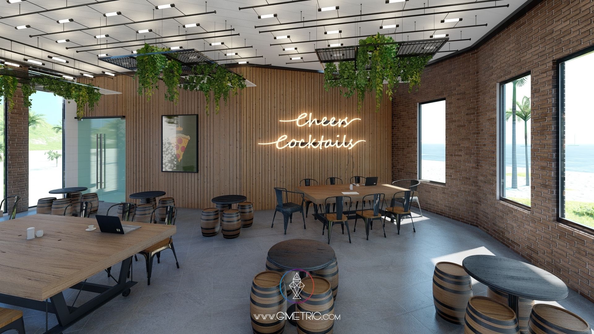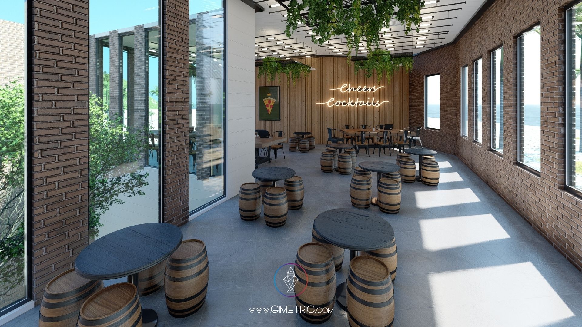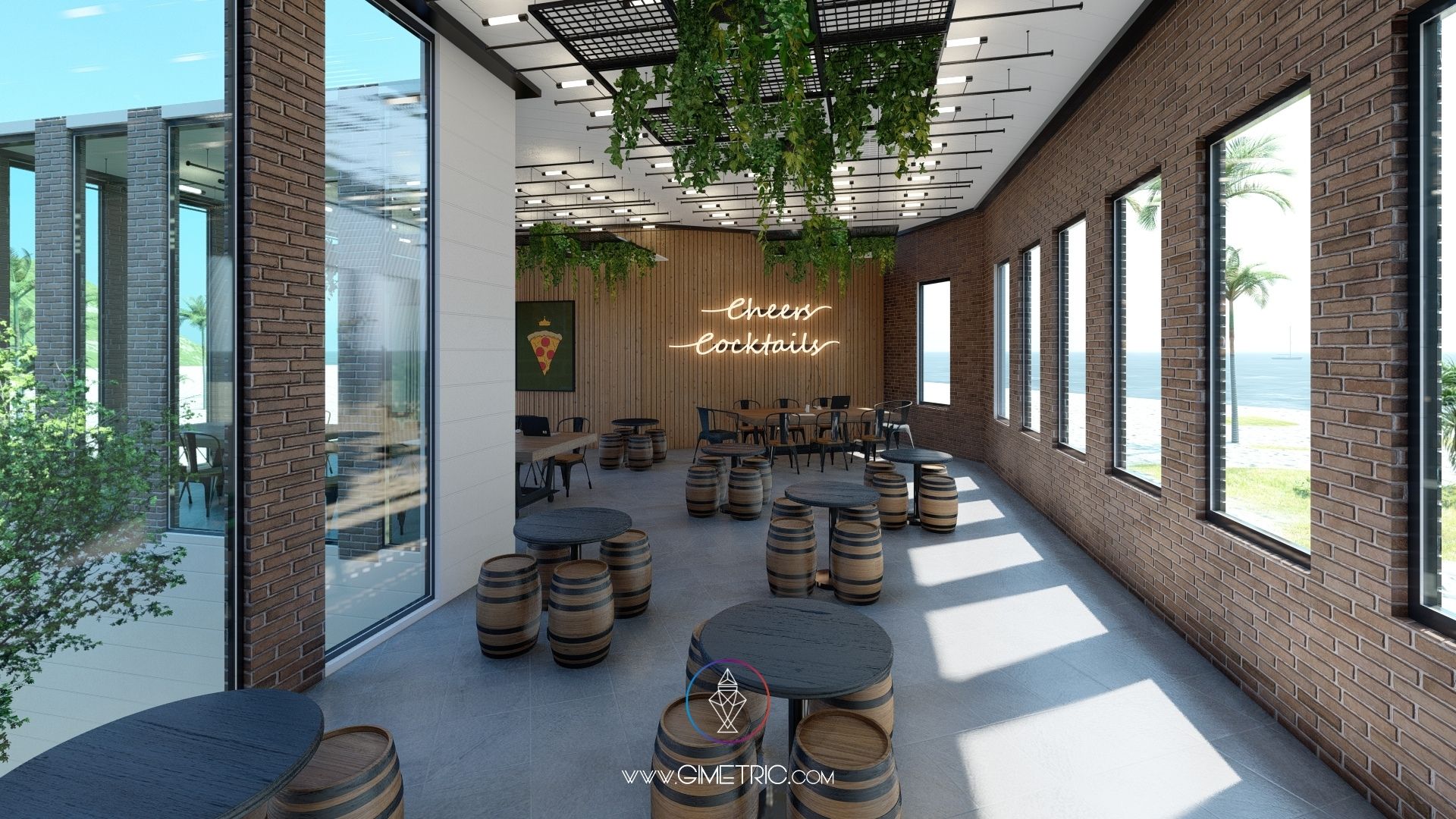 Diseño arquitectónico e interior de pizzería «Cheese Corner» en Boca del Río Veracruz con excelentes vistas al mar. Creamos espacios cálidos y con mucho carácter inspirándonos en el estilo industrial y Mid Century fusionado con la arquitectura de Chicago, en donde nuestra cliente vivió más de 4 años, ha decidido mudarse nuevamente a su ciudad de origen Boca del Río Veracruz y emprender llevando un poco de Chicago a su ciudad. Esta pizzería tiene interiores increíbles que sabemos te van a encantar.