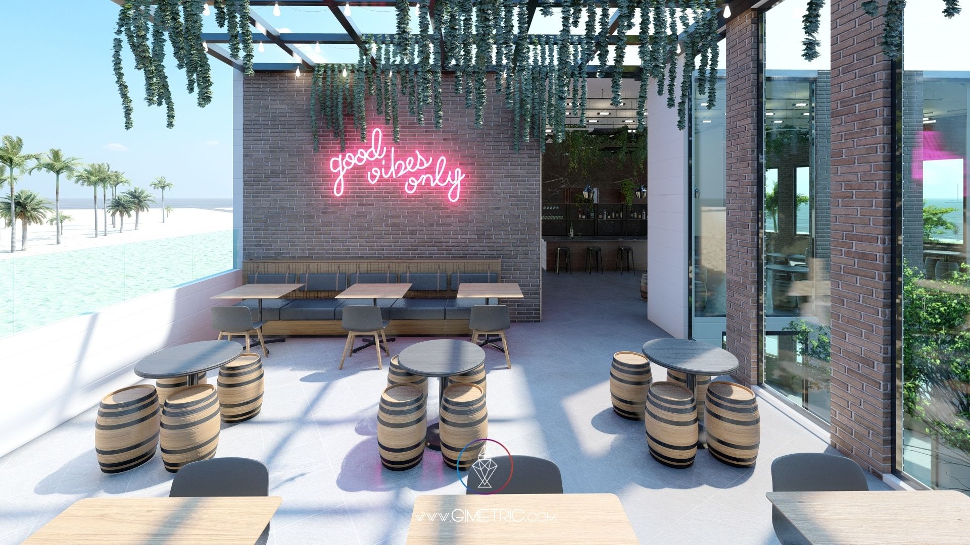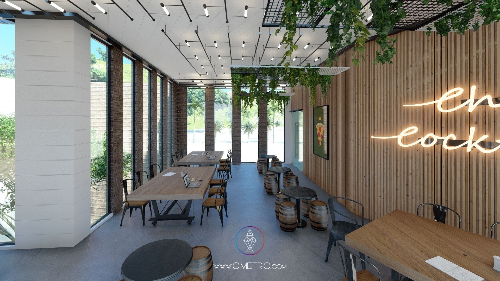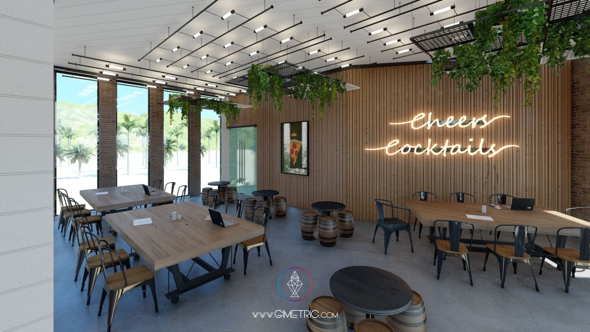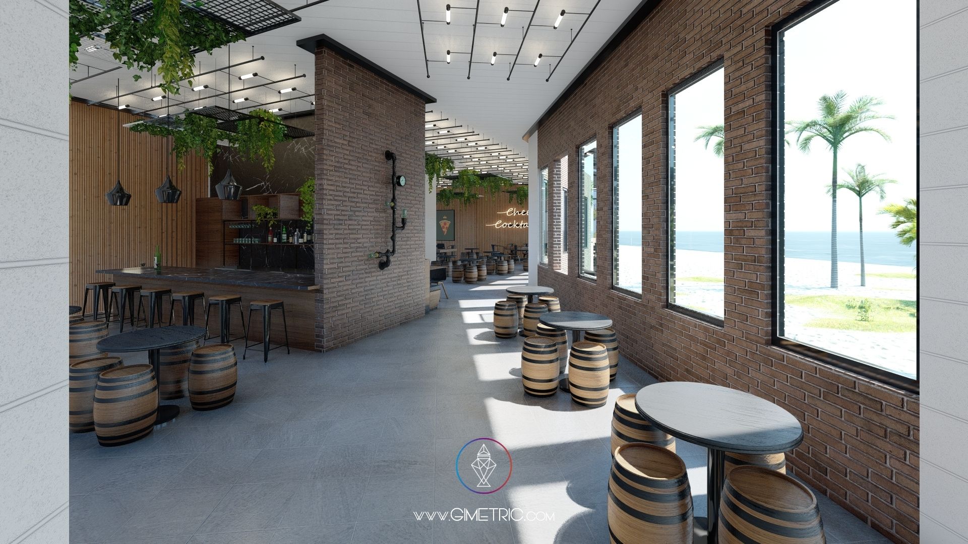 Diseño arquitectónico e interior de pizzería «Cheese Corner» en Boca del Río Veracruz con excelentes vistas al mar. Creamos espacios cálidos y con mucho carácter inspirándonos en el estilo industrial y Mid Century fusionado con la arquitectura de Chicago, en donde nuestra cliente vivió más de 4 años, ha decidido mudarse nuevamente a su ciudad de origen Boca del Río Veracruz y emprender llevando un poco de Chicago a su ciudad. Esta pizzería tiene interiores increíbles que sabemos te van a encantar.